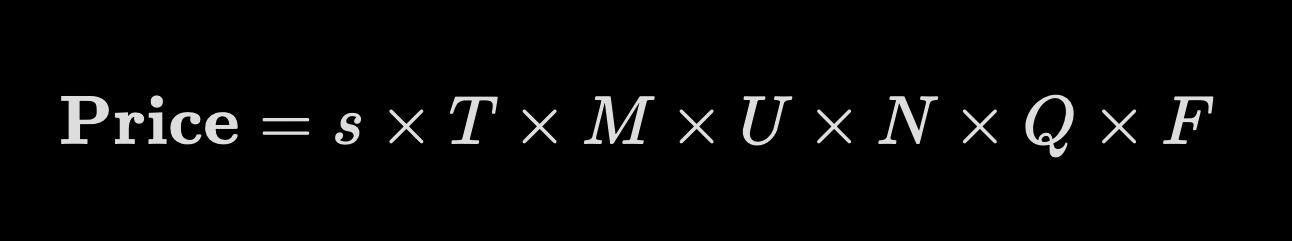 - M — Modality multiplier (text = 1; text+code = 1.1–1.4; audio = 5–10; video = 10–20)