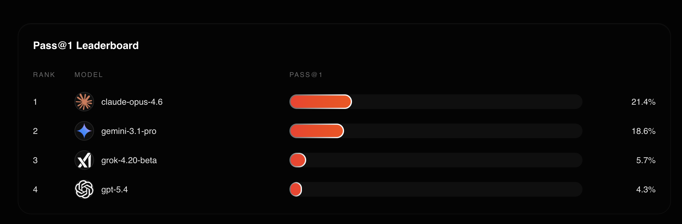 Agents may someday markedly improve researcher efficiency in professional and scientific settings, but evals are a critical step in building the trust needed to get there. By open sourcing the full task dataset and Harbor adapter, we hope this benchmark can be used as another robust and independent baseline to accompany the advancement of AI agents in the sciences.